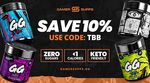 GamerSupps GG Energy is a gaming-focused energy supplement powder with zero sugars, less than 1 calorie per serving, and keto-friendly formula. Use code TBB at checkout to save 10% on your order. Visit gamersupps.gg/tbb to shop all flavors including Blue, Grenader Grape, Misfits Melon, and more.