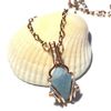 Copper wire wrap small teardrop shape blue Amazonite stone pendant. Comes with the 20” copper chain. Pendant is 1/2” wide and 1” high. Available here :